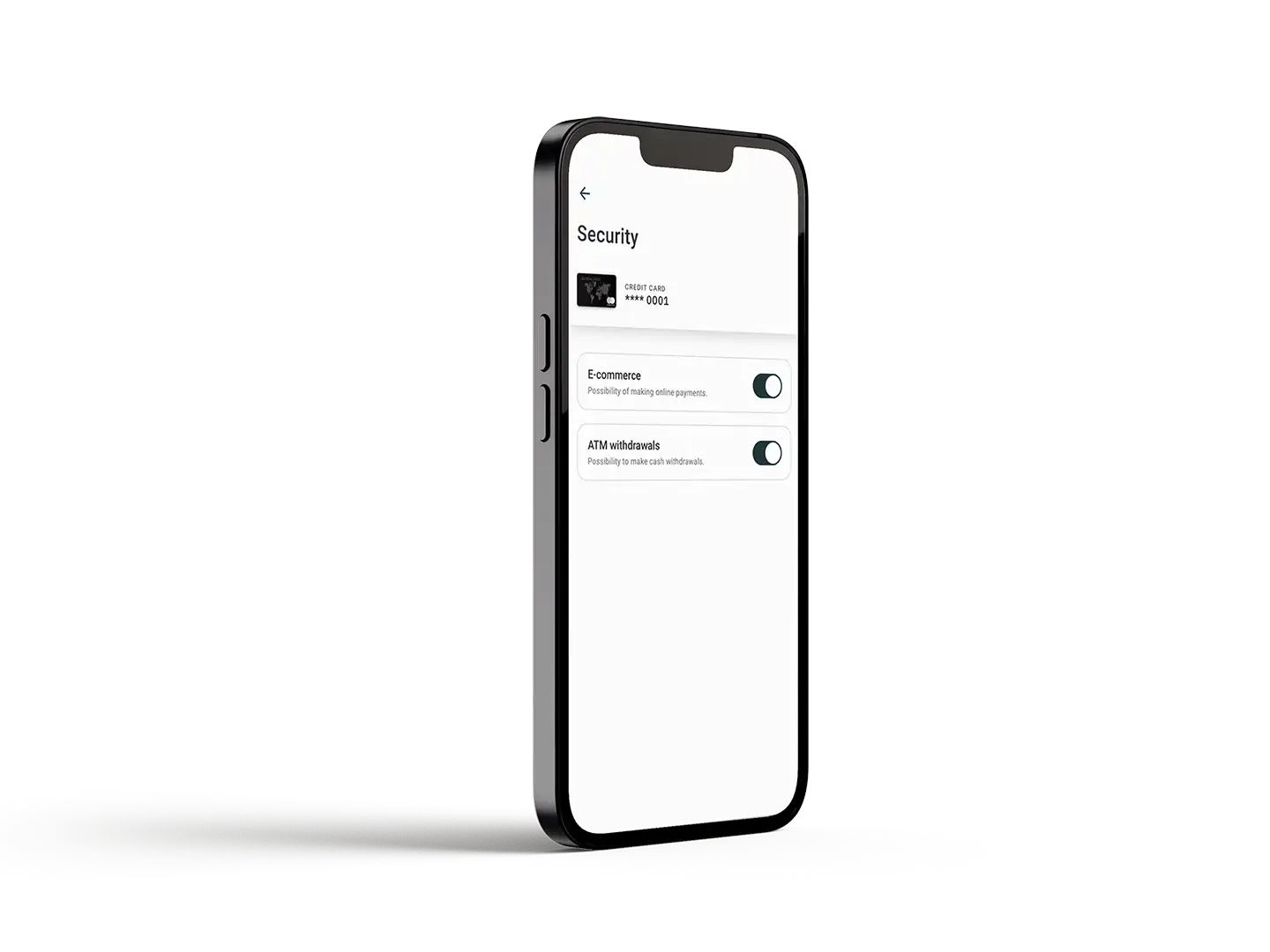 Activate or deactivate online payments and cash withdrawals at ATMs.