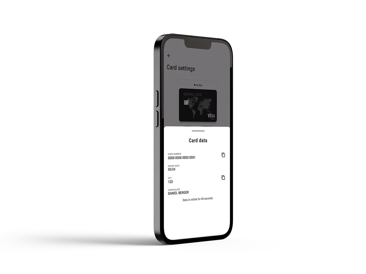 Retrieve the card number, expiry date, CVV and cardholder securely at any time.