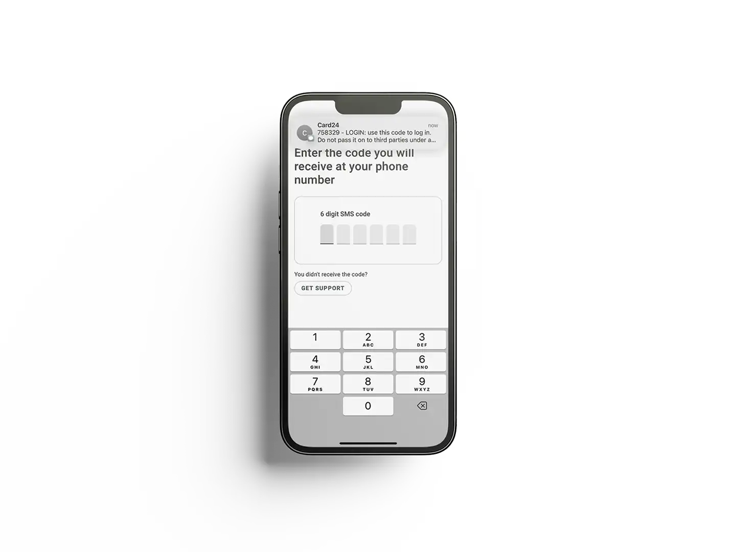 In the «Cards» section of your card24 you’ll find the option to request your PIN code.